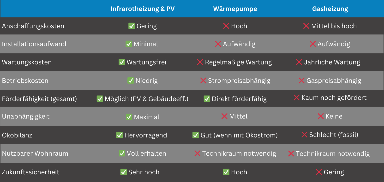 Wer von Anfang an auf Infrarot setzt, profitiert nicht nur von niedrigeren Investitions- und Betriebskosten, sondern auch von einem Heizsystem, das perfekt zur heutigen Bauweise passt – wartungsfrei, langlebig, modern und zukunftssicher.